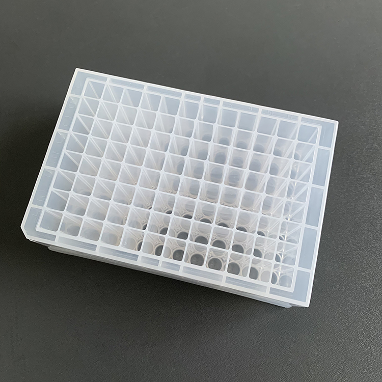 96孔深孔板的用途及注意事項介紹!96孔深孔板采用進口高純度耐用聚丙烯(PP)制成,具有優良的耐化學性;本產品及管匯支架系列適用于高通量篩分和長期儲存。深孔板采用高透明度超純聚丙烯材料,結合獨特的注塑技術,生產出穩定、耐化學腐蝕、高純度的容器。本產品可根據實驗要求配96孔板蓋(含硅膠墊),特別適用于微生物培